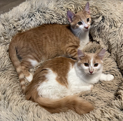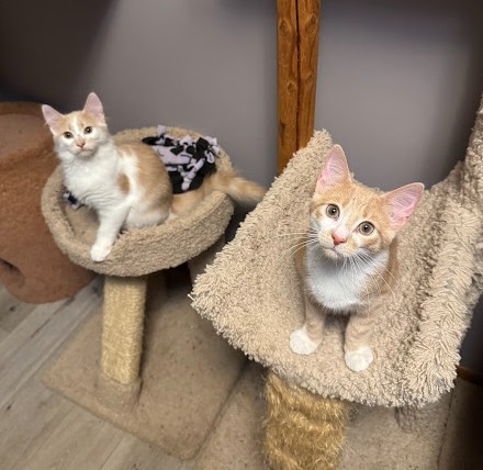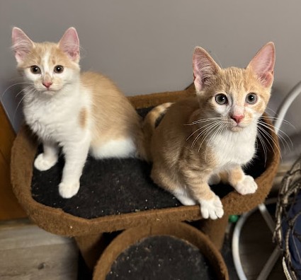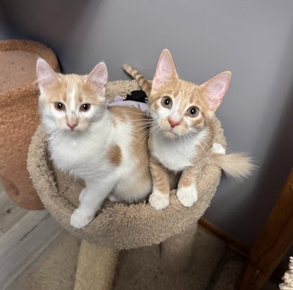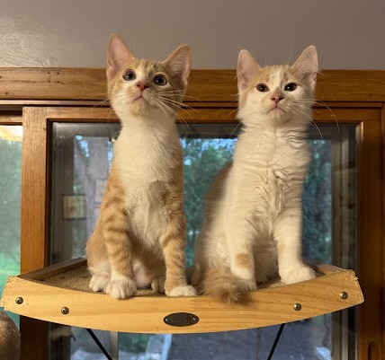 Acorn and Peanut are the remaining siblings – their littermates have all been adopted. They are super playful, sweet, silly kittens. They love toys, wrestling, and running up and down the hall as fast as possible. 🙂