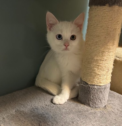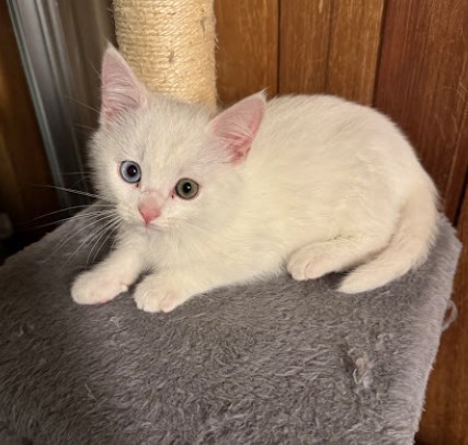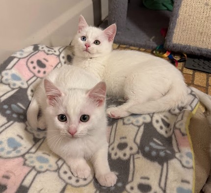 All seven kittens arrived to rescue completely terrified of humans. We have worked diligently to earn their trust, but they are still very timid with new people and will require time and effort in their new homes to continue teaching them humans are good and they are safe. They are all very treat-motivated and toy-motivated, so they will come out of hiding for the right snacks and entertainment!